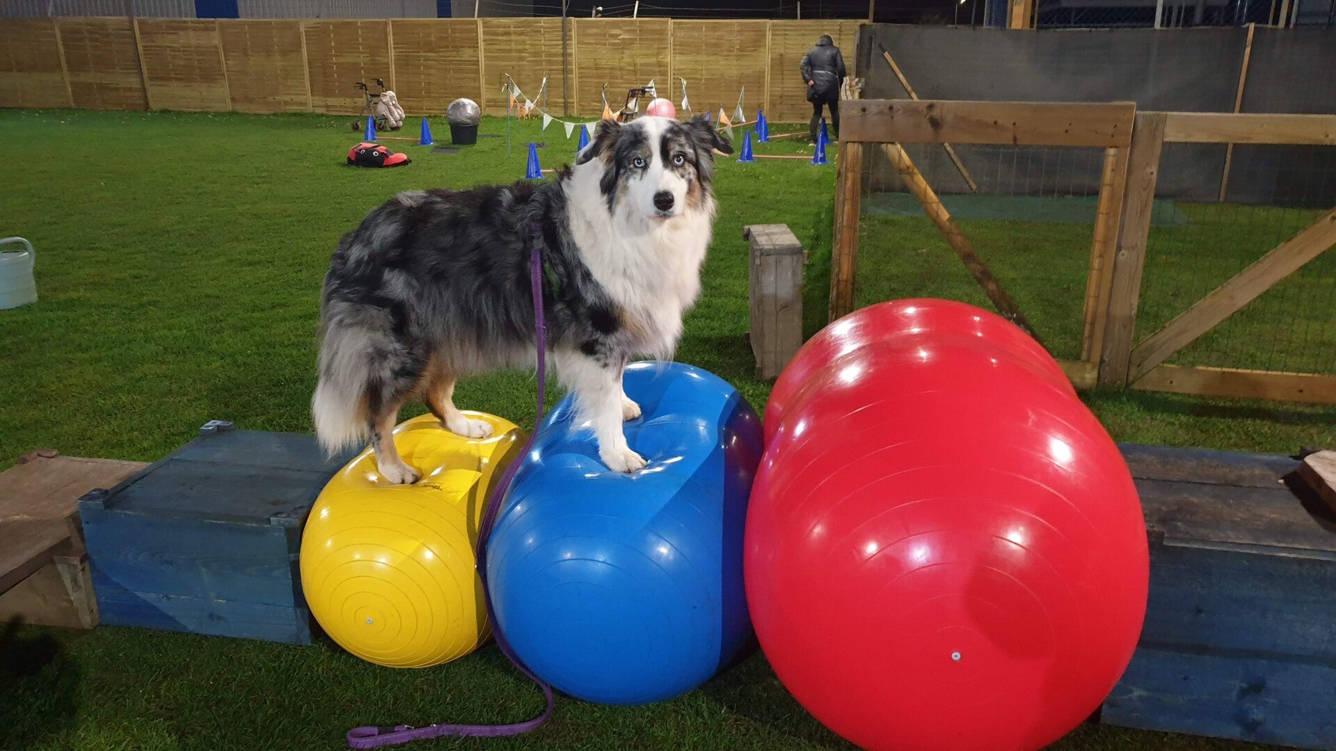 Pas toen Jinx in de palen, bij behendigheid, een flinke blessure opliep ben ik naar de osteopaat gegaan. En kwam er dus achter dat die zo veel voor een dier kon betekenen. Maar ik zag zelf nog steeds niet heel vroeg de tekenen van pijn. Als ik nu filmpjes van haar terug kijk, zie ik een hond met een stijve rug. Met Jinx ben ik balans en coördinatie gaan doen. Dat hebben we heel wat jaartjes gedaan en oh wat vond ze dat leuk! Vol overgave stonden we bij Funfor2 in de les. Pamela zei altijd: geef je hond wat rust tussen de oefeningen door, maar daar wilde Jinx niks van weten. Ik denk dat we dat toch wel zo'n 6 jaar hebben gedaan.